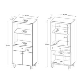 Dimensões(Cm): Comprimento(Profundidade): 43cm x Largura: 67,9cm x Altura: 157,7cm