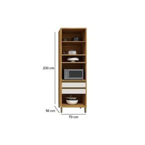 Paneleiro de Cozinha Tempranillo c/ 3 Portas 1 Nicho p/ Forno e 2 Gavetas 70x230cm Amendoa/Off White - Ronipa