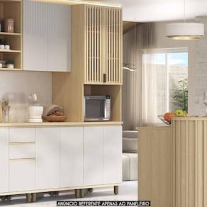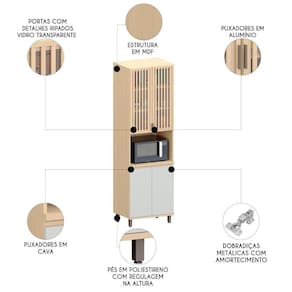 Com três prateleiras internas, ele proporciona amplo espaço para organizar utensílios, louças e outros itens essenciais da Cozinha. O nicho foi projetado para acomodar micro-ondas otimizando o espaço e garantindo ainda mais praticidade no seu dia a dia.