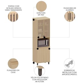 Com três prateleiras internas, ele proporciona amplo espaço para organizar utensílios, louças e outros itens essenciais da Cozinha. O nicho foi projetado para acomodar micro-ondas otimizando o espaço e garantindo ainda mais praticidade no seu dia a dia.
