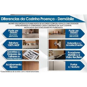Estrutura 100% MDF: maior resistência e durabilidade para o uso diário na cozinha.
