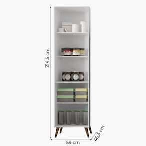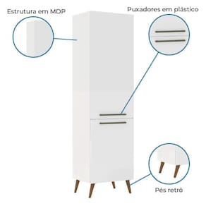 O Paneleiro Favorita oferece o espaço que necessita para guardar todos os seus utensílios e ainda valorizar a decoração de sua cozinha com mais estilo e sofisticação. Tem duas portas, três prateleiras e quatro pés tipo retro. É possível ainda fazer composições com outros modulados da linha "Favorita". Use sua criatividade e crie a cozinha dos seus sonhos!/ DIMENSÕES: A = 214,5 cm/ L = 59 cm/ P = 46,3 cm/ NOME: Paneleiro Duplo 2 Portas Favorita/ MARCA: Zanzini/ COR: Branco Lacca/ MATERIAL: MDP 15 mm/ ACABAMENTO: UV-Verniz/ TIPO DE ACABAMENTO: Fosco / Brilho/ PORTAS: 2/ TIPO DE PORTA: Com dobradiças/ GAVETAS: Não possui/ PRATELEIRAS: 3/ NICHO: Não possui/ PÉS: 4/ MATERIAL DOS PÉS: Plástico/ ESTILO DOS PÉS: Palito Retrô/ DOBRADIÇAS: Metálicas 35 mm/ PUXADORES: Plástico/ CORREDIÇAS: Não possui/ ESPESSURA PRATELEIRAS: 15 mm/ ESPESSURA GAVETAS: 15 mm/ PESO: 47 kg/ INFORMAÇÕES COMPLEMENTARES: Fabricado com painéis de madeira reflorestada e certificada/ SISTEMA DE MONTAGEM: Parafusos auto atarraxantes, pregos/ RECOMENDAÇÕES DE LIMPEZA: Limpar com flanela ou pano macio seco, não utilizar produtos abrasivos, desengordurantes, álcool ou qualquer outro produto químico. Não expor o produto diretamente à luz solar e à umidade/ GARANTIA: 3 meses contra defeito de fabricação.