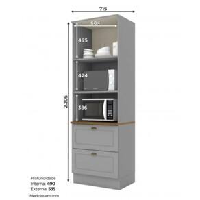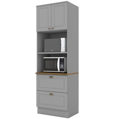 Composto por 2 portas de bater com dobradicas metalicas, gavetas com corredicas telescopicas, prateleira interna, espacos para forno ou microondas, puxadores em metal, este armario e um modulo avulso da composicao Cozinha Modulada Americana e e ideal para compor sua cozinha como desejar.