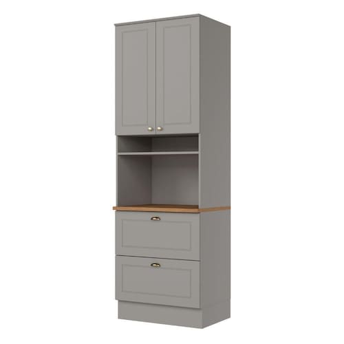 Composto por 02 portas de bater com dobradicas metalicas, gavetas com corredicas telescopicas, prateleira interna, espaco para forno ou micro-ondas, puxadores em metal, este armario e um modulo avulso da composicao Cozinha Modulada Americana e e ideal para compor sua cozinha como desejar. Um conceito inspirado nas classicas cozinhas estilo americano, seu design contemporaneo e diferenciado embeleza qualquer ambiente.
