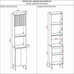 O Paneleiro Duplo Forno ART é perfeito para quem busca praticidade, organização e sofisticação na cozinha. Produzido em MDP de 1,2cm e 1,5cm, garante resistência e durabilidade no uso diário. Possui dobradiças 100% metálicas com amortecedor, que proporcionam um fechamento suave e silencioso. A porta basculante com pistão a gás facilita o acesso ao compartimento superior. Seu design moderno é valorizado pelas portas usinadas em 45°, que trazem um toque elegante ao ambiente. Conta com prateleira interna bem distribuída, ideal para armazenar utensílios e mantimentos. Para mais funcionalidade, inclui passa fio adesivo para eletrodomésticos e pés reguláveis em plástico resistente. O acabamento em pintura com secagem UV garante proteção e um visual impecável por muito mais tempo. Acabamento da Porta: Pintura UV Acabamento da Prateleira: Pintura UV Acompanha Rodapé Decorativo: Não Altura dos Pés: 17 cm Ambiente Principal: Cozinha codigo_ean: 7900288188229 Complexidade da Montagem: Baixa: pode ser montado por uma pessoa sozinha Cor: Freijó / Ártico Cor do Produto: Freijó / Ártico Cor Flex: Não Cor Interna: Freijó Escala de Brilho: Brilhante Escala de Brilho da Porta: Brilhante Escala de Brilho da Prateleira: Fosco Itens Inclusos: 1 Paneleiro, Manual de Montagem e Kit Ferragens Linha ou Coleção: Art Manual de Montagem e Instalação: https://product-hub-prd.madeiramadeira.com.br/916790384/documents/d7c9e873-9c96-4dc7-9673-62aef23a1544296765464311748869138661.pdf Marca: Kits Paraná Material da Dobradiça/Corrediça da Porta: Metálica Material da Porta: MDP Material da Prateleira: MDP Material dos Pés: Plástico modular: Sim Montagem Flex: Não Necessita Montagem: Sim Origem do Produto: Nacional Pés Reguláveis: Sim Peso: 39,75 kg Peso Máximo por Prateleira: 12 kg Possui Espelho: Não Possui Possui Pés: 04 Possui Portas: 03 Possui Prateleiras: 02 Possui Rodízio: Não Recomendações de Uso, Manutenção e Limpeza: Limpeza do produto somente com pano seco ou levemente umedecido, não utilizar produtos abrasivos. Respeitar o limite de peso estabelecido no esquema de montagem. Evitar mover o produto com utensílios dentro. Sapatas Niveladoras: Não Sistema de Montagem: Parfuso, Prego, Cavilha, Suporte de Prateleira, Porca e Bucha. Tipo de Dobradiça/Corrediça da Porta: Soft close Tipo de Paneleiro: Paneleiro Duplo Tipo de Puxador da Porta: Embutido Marca: Não Informado