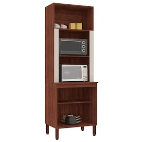 Produzido em MDP de 15 mm., madeira reconstituída provinda de reservas manejadas para este fim, é um produto ecologicamente correto. Nas quatro portas são utilizadas dobradiças 100% metálicas que garantem facilidade e segurança no abrir e fechar das portas. Dispõe de amplo espaço interno para melhor organizar os objetos da cozinha, além de um micho para microondas e forno elétrico. Os puxadores são ergônomicos em plástico resistente. Em sua base utiliza pés reguláveis em plástico resistente que propicia perfeita montagem mesmo em pisos com pequenos desníveis.