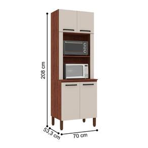 Produzido em MDP de 15 mm., madeira reconstituída provinda de reservas manejadas para este fim, é um produto ecologicamente correto. Nas quatro portas são utilizadas dobradiças 100% metálicas que garantem facilidade e segurança no abrir e fechar das portas. Dispõe de amplo espaço interno para melhor organizar os objetos da cozinha, além de um micho para microondas e forno elétrico. Os puxadores são ergônomicos em plástico resistente. Em sua base utiliza pés reguláveis em plástico resistente que propicia perfeita montagem mesmo em pisos com pequenos desníveis.
