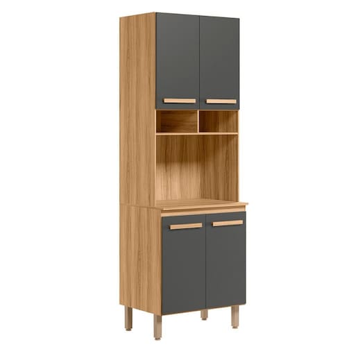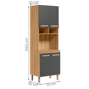 Modelo: Paneleiro Duplo; Altura: 212,5 cm; Largura: 70 cm; Profundidade: 53 cm; Material da estrutura: MDP; Quantidade de portas: 04; Material de dobradiças: Metálicas; Quantidade de gavetas: Não se aplica; Com puxador: Sim, em MDF; Quantidade prateleiras: 02; Pés com regulagem: Sim; Peso suportado: até 58 kg distribuídos; Requer montagem: Sim (kit montagem incluso);
