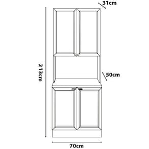 O paneleiro duplo modelo Unna é uma excelente escolha, isso porque ele conta com estrutura feita em MDP 15mm, porta de bater almofadadas e molduradas em MDF, vidro incolor com 3mm de espessura, as dobradiças de 35mm são reforçadas, as prateleiras são espaçosas, o seu puxador em polímero conta com estilo retrô, o rodapé removível conta com presilhas modelo click e os pés em PVC contam com regulagem de altura.