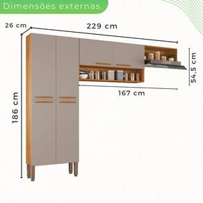 O Paneleiro e Aéreo 6 Portas Cozinha Madri tem um excelente custo-benefício e um amplo espaço interno. Produzida em MDP com pintura Touch UVTH, que garante maior durabilidade e resistência, pés com regulagem de altura em polipropileno, que deixam o ambiente mais estiloso, puxadores de madeira e portas em MDP 15mm com pintura de alta resistência. Os módulos podem ser montados da maneira que se adaptar melhor ao seu ambiente. Acabamento da Prateleira: Pintura UV Escala de Brilho da Prateleira: Semi-Brilho Acabamento da Porta: Pintura UV Escala de Brilho da Porta: Semi-Brilho Acabamento dos Pés: Polipropileno Altura dos Pés: 15 Altura Máxima dos Pés: 15.0000 Ambiente Principal: Cozinha codigo_ean: 7909903520864 Complexidade da Montagem: Média: pode ser montado por mais de uma pessoa e/ou necessite de maior conhecimento para montagem Cor: Cinamomo/Off-White Cor do Produto: Cinamomo/Off-White Escala de Brilho: Semi-Brilho Itens Inclusos: 1 Paneleiro e Aéreo, Manual de montagem e kit ferragens. Linha ou Coleção: Madri Manual de Montagem e Instalação: https://product-hub-prd.madeiramadeira.com.br/884537/documents/12dfad9a-79f3-4ade-abb5-817fe294853108030manualdemontagemmadri.pdf Material da Dobradiça/Corrediça da Porta: Metálica Material da Porta: MDP Material da Prateleira: MDP Material dos Pés: Polipropileno Necessita Montagem: Sim Origem do Produto: Nacional Pés Reguláveis: Sim Peso: 41 kg Peso Máximo por Prateleira: 5 kg Possui Espelho: Não Possui Possui Pés: 04 Possui Portas: Sim Possui Prateleiras: Sim Possui Rodízio: Não Produto Montado: Sim Recomendações de Uso, Manutenção e Limpeza: Para limpar corretamente seus armários de madeira, use sempre um pano liso e levemente umedecido com água. Sapatas Niveladoras: Sim Sistema de Montagem: Parafusos, Cavilhas, Dobradiças e Puxadores. Suporta Até (kg): 30 kg Tipo de Dobradiça/Corrediça da Porta: Simples Tipo de Puxador da Porta: Externo