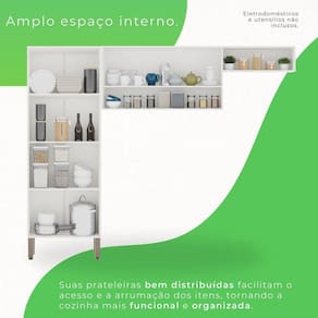 O Paneleiro e Aéreo 6 Portas Cozinha Madri tem um excelente custo-benefício e um amplo espaço interno. Produzida em MDP com pintura Touch UVTH, que garante maior durabilidade e resistência, pés com regulagem de altura em polipropileno, que deixam o ambiente mais estiloso, puxadores de madeira e portas em MDP 15mm com pintura de alta resistência. Os módulos podem ser montados da maneira que se adaptar melhor ao seu ambiente. Acabamento da Prateleira: Pintura UV Escala de Brilho da Prateleira: Brilhante Acabamento da Porta: Pintura UV Escala de Brilho da Porta: Brilhante Acabamento dos Pés: Polipropileno Altura dos Pés: 15 Altura Máxima dos Pés: 15.0000 Ambiente Principal: Cozinha codigo_ean: 7909903520611 Complexidade da Montagem: Média: pode ser montado por mais de uma pessoa e/ou necessite de maior conhecimento para montagem Cor: Branco Cor do Produto: Branco Escala de Brilho: Brilhante Itens Inclusos: 1 Paneleiro e Aéreo, Manual de montagem e kit ferragens. Linha ou Coleção: Madri Manual de Montagem e Instalação: https://product-hub-prd.madeiramadeira.com.br/884501/documents/e7145a4f-59f9-40c6-8ab8-759f5c63675608030manualdemontagemmadri.pdf Material da Dobradiça/Corrediça da Porta: Metálica Material da Porta: MDP Material da Prateleira: MDP Material dos Pés: Polipropileno Necessita Montagem: Sim Origem do Produto: Nacional Pés Reguláveis: Sim Peso: 41 kg Peso Máximo por Prateleira: 5 kg Possui Espelho: Não Possui Possui Pés: 04 Possui Portas: Sim Possui Prateleiras: Sim Possui Rodízio: Não Produto Montado: Sim Recomendações de Uso, Manutenção e Limpeza: Para limpar corretamente seus armários de madeira, use sempre um pano liso e levemente umedecido com água. Sapatas Niveladoras: Sim Sistema de Montagem: Parafusos, Cavilhas, Dobradiças e Puxadores. Suporta Até (kg): 30 kg Tipo de Dobradiça/Corrediça da Porta: Simples Tipo de Puxador da Porta: Externo