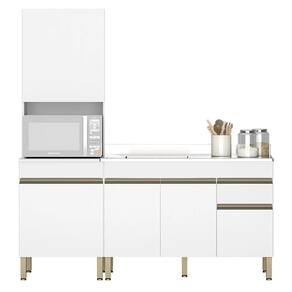 São móveis práticos e funcionais para a Cozinha. O Paneleiro Torre Quente e o Balcão Gabinete Para Pia são excelentes para guardar utensílios, mantimentos, louças e eletrodomésticos com aproveitamento de espaço conta também com prateleira interna para melhor organização. Ah! O balcão acompanha Pia Inox de 150cm com cuba e válvula. Além disso, ele tem um design moderno e uma pintura UV, puxadores em alumínio, e dobradiças metálicas que garante maior durabilidade e resistência aos móveis.