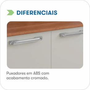 Benefícios ao Comprar: Amplo espaço para armazenamento de utensílios, panelas e mantimentos; Combinação de cores sofisticadas (Cinamomo e Off White) que valoriza a decoração; Estrutura resistente e durável em MDP/MDF/HDF; Puxadores ergonômicos que garantem praticidade no dia a dia; Otimiza o espaço da cozinha ao ser instalado de forma suspensa; Produto Itatiaia, referência em qualidade e tradição em móveis de cozinha.