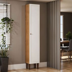 O(a) Paneleiro Essência Frizz 1 Porta 100% Mdf Cinamomo/Branco - Geniaflex é produzido em MDF na escala de brilho Fosco, e possui um grau de dificuldade de montagem: Médio.