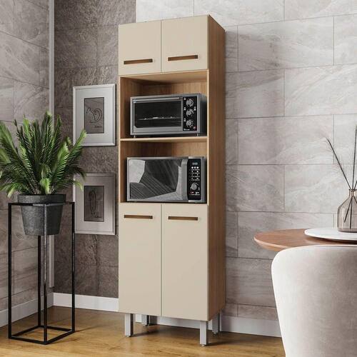 Paneleiro alto com quatro portas e dois nichos centrais para eletrodomésticos exemplo micro-ondas, forno elétrico. Oferece amplo espaço interno para utensílios e mantimentos, pés elevados que facilitam a limpeza e design moderno que otimiza o espaço da cozinha.Dimensões do Paneleiro:Altura: 197 cmLargura: 60 cmProfundidade: 37,8 cmCaracterísticas Técnicas:- Chapa MDP- Caixote 12mm- Portas 15mm- Acabamento em pintura U.V- 04 Portas- Dobradiças metálicas- Puxadores plástico- Pés com regulagem- Altura pé 16 cmDiferenciais do Paneleiro Íris:- Material da Estrutura: fabricado com MDP12/15mm- Detalhes do Íris: Dobradiças Reforçadas; Puxadores Horizontais, finalizados com um excelente acabamento;Recomendações de limpeza:-Limpar com flanela limpa e seca. Não molhar o móvel e não expor em lugar úmido ou próximo de fontes de calor. Não usar produtos abrasivos.