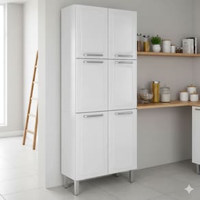 Amplo espaço interno é uma característica fundamental nesse móvel, que torna a sua tarefa de organizar os itens de cozinha bem facilitada. Ele tem seis portas e cinco prateleiras para você guardar panelas, copos, eletroportáteis, temperos e potes, sabendo que tudo estará sempre à mão. Afinal, praticidade assim nunca é demais.