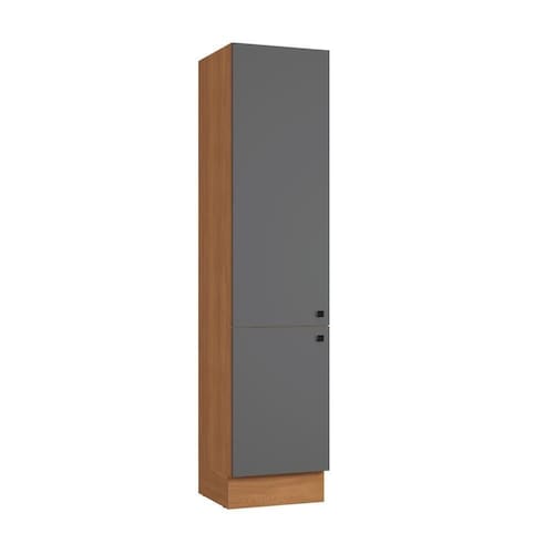 Com até sete camadas de pintura, a caixaria possui acabamento touch na cor canela, com a textura dos veios da madeira, enquanto as portas, em MDP e acabamento BP, são mais resistentes contra riscos, arranhões e gotas d'água, e na cor cinza sagrado, possui acabamento fosco. Uma combinação elegante e moderna, que dará ainda mais destaque ao seu espaço, deixando sua cozinha perfeita.