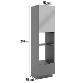 Dê um toque de sofisticação à sua cozinha com o Paneleiro Lumina 600MM! Com 2,40 metros de altura, ele combina design moderno e acabamento em cinza com um rodapé resistente, garantindo estilo e durabilidade. Sua porta superior e gaveta na parte inferior oferecem praticidade e elegância, ideais para organizar mantimentos, louças, acessórios e utensílios diversos. Além disso, conta com um espaço especialmente pensado para acomodar forno e micro-ondas, podendo ser utilizado para forno de embutir, otimizando ainda mais a funcionalidade do ambiente. Aproveitando ao máximo o espaço vertical, este paneleiro é a solução perfeita para unir funcionalidade e beleza no seu dia a dia.