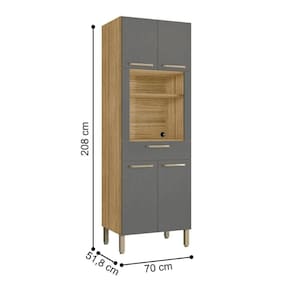 Produzido em MDP de 15 mm., madeira reconstituída provinda de reservas manejadas para este fim, é um produto ecologicamente correto. Nas quatro portas e na ampla gaveta são utilizadas dobradiças 100% metálicas e corrediças telescópicas que garantem facilidade e segurança no abrir e fechar das portas e gavetas. Dispõe de amplo espaço interno para melhor organizar os objetos da cozinha, além de um nicho para microondas e prateleira para pequenos objetos ou decoração acima do microondas. Os puxadores são ergônomicos em plástico resistente. Em sua base utiliza pés reguláveis em plástico resistente que propicia perfeita montagem mesmo em pisos com pequenos desníveis. Um produto que certamente irá ajudar na organização de sua cozinha, aproveitando muito bem os espaços.