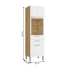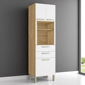 O Paneleiro possui três gavetas de tamanhos distintos que permitem liberdade para melhor organização do espaço, além de nicho para eletrodomésticos diversos e duas gavetas com ampla abertura garantida pelas corrediças telescópicas, para fechar, conta com puxadores ergonômicos feitos em plástico resistente.