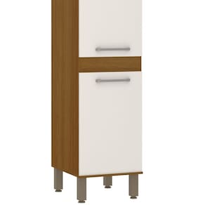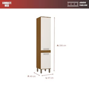 Fabricado com materiais de alta qualidade, como MDP de 15 mm e acabamento FF -Finish Foil-, o paneleiro garante resistencia, durabilidade e facil manutencao. Suas portas embutidas e prateleiras internas proporcionam praticidade e um visual planejado, ideal para cozinhas organizadas e elegantes.