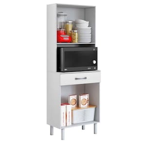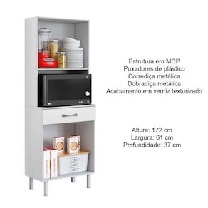O paneleiro possui 4 portas de bater, 1 gaveta e espaço para microondas, ele é feito com os melhores materiais do mercado e é perfeito para sua cozinha!