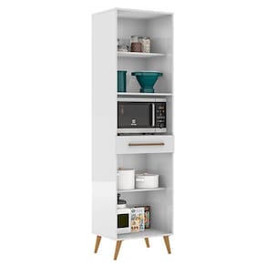 Procurando soluções inteligentes e extremamente práticas para organizar a sua cozinha com facilidade? O Paneleiro para Micro-ondas Favorita oferece o espaço que necessita para guardar todos os seus utensílios e ainda valorizar a decoração de sua cozinha com mais estilo e sofisticação. Tem duas portas com dobradiças metálicas de 35mm que proporcionam maior resistência, uma gaveta com corrediças telescópicas que possibilitam maior amplitude de abertura, espaço para micro-ondas, duas prateleiras internas e quatro pés de plástico estilo retro com regulagem de altura. É possível ainda fazer composições com outros modulados da linha "Favorita". Use sua criatividade e crie a cozinha dos seus sonhos.