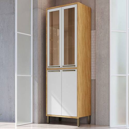 O(a) Paneleiro Syrah 4 Portas com Vidro 100% Mdf Amêndoa/Branco - Rio Doce é produzido em 100% MDF na escala de brilho Semi-Brilho, e possui um grau de dificuldade de montagem: Fácil.