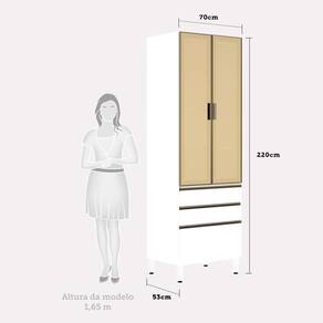 Paneleiro Torre 70cm 2 Portas Com Vidro Reflecta Bronze 2 Gavetas 1 Gavetão Pérola Luciane Móveis Branco Polar