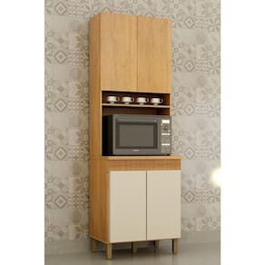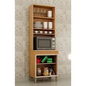 Amplo Espaço Interno com Nichos: Com 70cm de largura, possui um espaço interno muito bem dividido com prateleiras para organizar seus utensílios e panelas. Conta também com um nicho para forno ou micro-ondas e um nicho decorativo.
