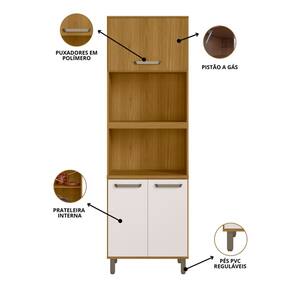 O Paneleiro Torre Quente é um produto elegante que oferece excelente espaço interno. São 2 portas de bater e 1 porta basculante com pistão a gás permitindo uma abertura mais suave que mantém a porta suspensa, prateleira interna, possui espaço para forno e micro-ondas (A.44cm x L.67cm x P.50cm), dobradiças metálicas reforçadas de 35mm, puxadores bronze em polímero, pés em PVC reguláveis de 17cm que permitem o nivelamento perfeito ao piso. Sua estrutura em MDP 15mm garante maior qualidade e resistência, portas com acabamento acetinado. Ideal para otimizar o espaço da sua cozinha, oferecendo armazenamento eficiente sem comprometer a estética. Este móvel chegará em sua casa separado em 03 volumes.