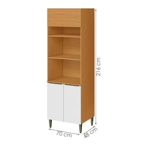Paneleiro Torre Quente 3 Portas, design pratico e funcional para transformar sua cozinha. Estrutura em MDF (15/12 mm) e acabamento em Verniz. Composto por porta superior passante com pistão a gás e inferiores com dobradiças metálicas, espaço próprio para forno ou microondas (67,6x40,5cm), nicho decorativo funcional, puxadores e pés em plástico. Este produto será entregue em 1 volume.