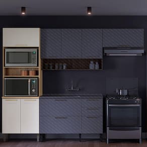 Este Paneleiro Torre Quente da linha Avelã é a solução perfeita para quem busca aproveitamento de espaço, com beleza e qualidade. Seu design remete ao estilo dos móveis planejados, além de ser equipado com ferragens de excelente qualidade. As portas contam com modernas dobradiças slow motion com caneco de 35mm - que proporcionam abertura e fechamento com maior absorção de impacto. A porta basculante é equipada com pistão a gás – um componente que garante mais sustentação e segurança, além de permitir que o movimento de abertura seja mais suave. OS puxadores, em estilo alça, são de alumínio – garantia de vida útil maior - e os pés possuem sistema de regulagem de altura, para facilitar a usabilidade. Possui ainda dois espaços reservados para forno e micro – aqueles eletros muito utilizados no dia a dia, que precisam estar ao alcance de sua mão. O detalhe do acabamento em estilo ripado do nicho marca a modernidade deste Paneleiro Torre Quente, em harmonia com o que é tendência em móveis. Complemente este módulo com outros itens da mesma linha para a criar a sua Cozinha Avelã dos sonhos.
