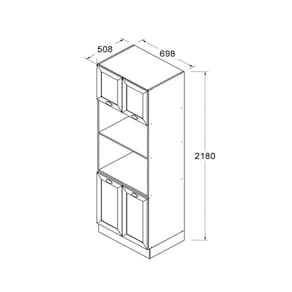 Com quatro portas e espaços generosos designados para forno elétrico e micro-ondas, este móvel se integra com elegância, especialmente quando combinado com outros itens da coleção Cozinha Ditália Denver.