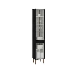 CARACTERÍSTICAS TÉCNICAS: - Produzido em MDP de 15 mm - Acabamento UV na cor Preto Texturizado - Portas com Dobradiças Metálicas - Puxadores Perfil em ABS na cor Bronze - Pés Reguláveis em ABS na cor Bronze
