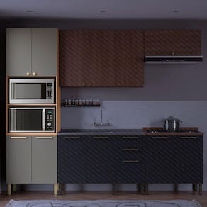Um Paneleiro Torre Quente ao estilo dos móveis planejados: este modelo da linha Sálvia é a escolha perfeita para trazer praticidade e beleza para a sua cozinha. Sua bela combinação de cores e diferentes modelos de puxadores vai complementar o espaço com muita personalidade, além da qualidade já reconhecida desta linha: este módulo possui caixaria resistente, pés têm regulagem de altura e portas são equipadas com dobradiças com sistema de amortecimento slow motion - para garantir mais suavidade nos movimentos de abertura e fechamento. Os dois espaços reservados para forno e micro são amplos e indispensáveis para acomodação daqueles eletros muito utilizados no dia a dia, que precisam estar ao alcance de sua mão. A linha Sálvia é totalmente modulada, por isso você combinar a Torre Quente com outros itens da mesma linha e planejar a cozinha de acordo com as suas necessidades. Acabamento da Porta: Finish Foil Acabamento da Prateleira: Finish Foil Acabamento dos Pés: Polipropileno Altura dos Pés: 17 Ambiente Principal: Cozinha Complexidade da Montagem: Média: pode ser montado por mais de uma pessoa e/ou necessite de maior conhecimento para montagem Cor: Freijó/Grafite Cor do Produto: Freijó/Grafite Cor Interna: Freijó Escala de Brilho: Semi-Brilho Escala de Brilho da Porta: Semi-Brilho Escala de Brilho da Prateleira: Semi-Brilho Gaveta com Chave: Não Itens Inclusos: 1 Paneleiro, Manual de Montagem, Kit Ferragens Manual de Montagem e Instalação: https://cdn2.madeiramadeira.com.br/atributo/telasul/1353328-m908505-a3.pdf Material da Dobradiça/Corrediça da Porta: Aço Material da Porta: MDP Material da Prateleira: MDP Material do Puxador da Porta: Alumínio Material dos Pés: Polipropileno Necessita Montagem: Sim Origem do Produto: Nacional Pés Reguláveis: Sim Peso: 59 Peso Máximo por Prateleira: 18 Possui Espelho: Não Possui Possui Pés: 04 Possui Portas: 04 Possui Prateleiras: 03 Possui Rodízio: Não Recomendações de Uso, Manutenção e Limpeza: Na limpeza, utilizar pano macio levemente umedecido em água e sabão neutro. Após, secar para evitar mofo no produto.Nunca utilizar álcool ou produtos abrasivos e, principalmente, esponjas de aço ou qualquer material que arranhe a superfície.Evitar o armazenamento de substância ácidas (sal, vinagre, limão, cebola, etc) em contato direto com o móvel. Rodízio com Trava: Não Sapatas Niveladoras: Não Sistema de Montagem: Parafuso, cavilha, prego, Minifix Tipo de Dobradiça/Corrediça da Porta: Soft close Tipo de Puxador da Porta: Externo undefined: 852282