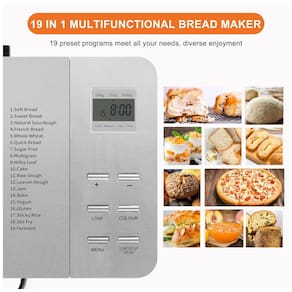 Panificadora 19 em 1 em aço inoxidável com dispensador automático, panela de cerâmica antiaderente e painel digital LCDAcessórios