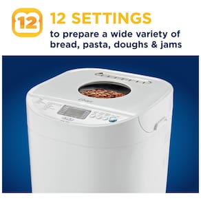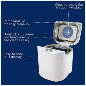 A máquina de fazer pão oster de 650 watts com capacidade de pão de até 2,0 libras é ideal para famílias maiores 12 configurações de pão e 3 configurações de crosta para fazer uma variedade de pães, massa e geleias Configuração Expressbake assa pão em menos de uma hora Temporizador de cozimento programável de 13 horas para pão fresco a qualquer hora Visor LCD grande e controles de botão intuitivos para fácil operação, comprimento do cabo de