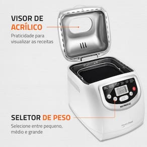 Panificadora automática Mondial Master Bread com 19 funções, painel digital, ajuste de tonalidade e peso, função timer e potência de 700W.Porta-fio