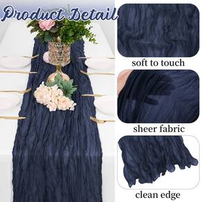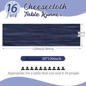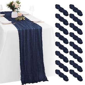 caminho de mesa - Package Included: You will get 16 pack of navy blue cheesecloth table runners, enough to meet your daily use and replacement needs. The size of each cheese cloth table runner is about 20 x 120 inches, it's long enough to fit different size tables and chairs. A variety of colors for you to choose from, perfect for weddings and parties, adding a romantic atmosphere to your occasion - Premium Material: Our cheese cloth table runners are made from premium gauze table runner and crinkle gauze fabric. The blue table runner with beautiful wrinkles, soft to the touch, reusable, washable and fade-resistant. This boho gauze table runner is translucent and drapes naturally, perfectly and elegantly placed on a table or hung from the floor - Perfect Looking: This rectangular natural pleated table runner has a rustic elegant look and is lightweight and easy to store. Cheesecloth table runner are an easy way to add texture to your table decor. Paired with some candles and flowers, the beautiful and elegant design will instantly enhance your dining environment, very suitable for romantic and elegant party events - Widely Use: These romantic table runners have a rustic yet elegant look that is suitable for most occasions. It's a great choice for your home decoration and perfect for weddings, parties, arches, tables, birthday backdrops, Christmas, baby showers, etc. Add a romantic touch to your event and create a warm party atmosphere - After-Sales Service: Your satisfaction has always been our goal. If you have any questions after receiving the product, please feel free to contact us and we will solve your problem as soon as possible. The vintage wedding table runners are recommended for machine washable in a laundry bag or hand wash in cold water. Do not bleach or soak for too long, which is better for maintaining the long-term use of these cheesecloth table runner