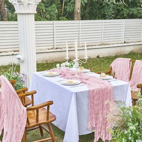 - Pacote - 3 m (1/2/6 peças) toalhas de mesa de gaze de fazenda, quantidade suficiente para recepção de casamento e todos os tipos de reuniões, cada caminho de mesa rústico mede cerca de 89 x 304 cm. Pode ser utilizado até mesmo para faixas de capa de cadeira, guardanapos decorativos, cortinas de pano de fundo