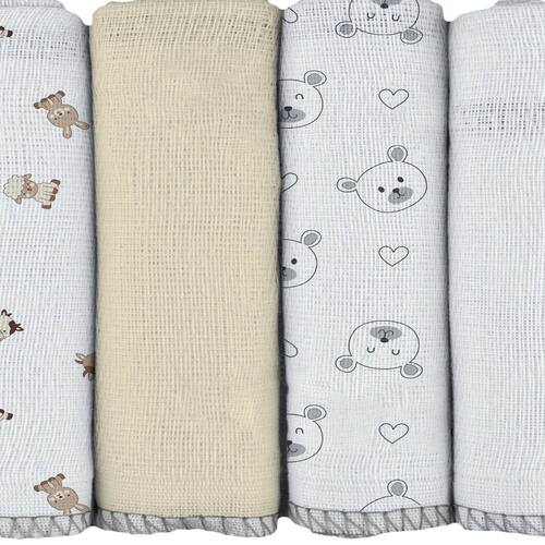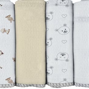 Características: - Contém 04 Unidades - Medidas Aproximadas: 34 cm x 34 cm - Tecido: 100% Algodão - Acabamento: Overlock nos 4 lados - Marca: Bublim