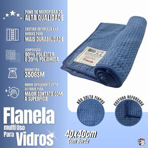 Pano de microfibra azul, desenvolvido exclusivamente para limpeza de vidros. sua trama fina evita fiapos e riscos, garantindo um acabamento perfeito e cristalino, ideal para detalhamento automotivo. Pano de microfibra azul Para vidros 40x40cm - 350gsm Composição: 80% poliéster e 20% poliamida. Utilize detergentes de ph neutro, ou Produtos específicos para a lavagem; - não utilize alvejantes, amaciante e ferro de Passar; - evite torcer a microfibra para não Ocasionar o rompimento dos filamentos, Diminuindo sua vida útil; - evite expor ao sol para não ressecar as Fibras do tecido. A nr estética oferece uma de 7 dias em seus produtos Marca: Não Informado
