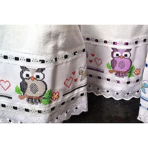 Pano de Prato Bordado em Ponto Cruz - Corujinha