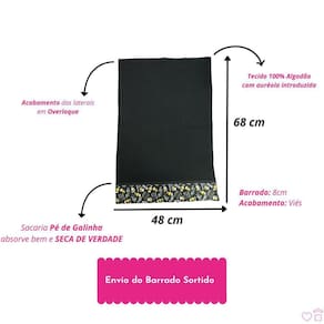 Transforme a sua cozinha com os nossos Panos de Prato Preto 100% Algodão Pé de Galinha, desenvolvido para unir elegância e funcionalidade em um único conjunto. Produzido com tecido 100% algodão do tipo pé de galinha, este kit oferece uma absorção superior, secando louças, mãos e superfícies com eficiência, enquanto o acabamento refinado em patchwork traz um toque de sofisticação à decoração. Características do Produto: - - Contém: 4 panos de prato - Dimensões: 48cm de largura x 68cm de comprimento; - Composição: 100% algodão, tecido tipo pé de galinha, perfeito para uma absorção eficaz e rápida secagem; - Acabamento de alta qualidade: Overloque reforçado e aviamento em viés, garantindo durabilidade e resistência a lavagens frequentes; Barrado: O envio do barrado é , respeitando a combinação com a cor preta do pano de prato. Marca: Não Informado