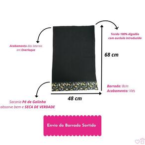 Transforme a sua cozinha com os nossos Panos de Prato Preto 100% Algodão Pé de Galinha, desenvolvido para unir elegância e funcionalidade em um único conjunto. Produzido com tecido 100% algodão do tipo pé de galinha, este kit oferece uma absorção superior, secando louças, mãos e superfícies com eficiência, enquanto o acabamento refinado em patchwork traz um toque de sofisticação à decoração. Características do Produto: - - Contém: 4 panos de prato - Dimensões: 48cm de largura x 68cm de comprimento; - Composição: 100% algodão, tecido tipo pé de galinha, perfeito para uma absorção eficaz e rápida secagem; - Acabamento de alta qualidade: Overloque reforçado e aviamento em viés, garantindo durabilidade e resistência a lavagens frequentes; Barrado: O envio do barrado é , respeitando a combinação com a cor preta do pano de prato. Marca: Não Informado
