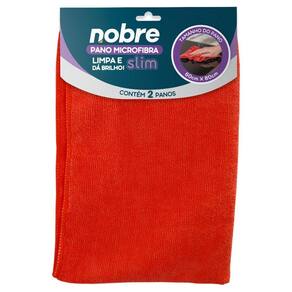 Pano de microfibra 60x80cm pacote com 2 unid. vermelho Slim - Nobre Panos em microfibra são considerados os mais eficientes do mercado. Ele não solta pó e retém sujeiras de modo mais efetivo que os panos Tradicionais. São eletrostáticos, tornando a limpeza mais prática, pois a sujeira também gruda na microfibra.