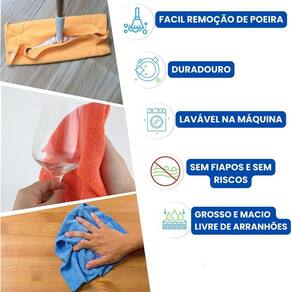 - Carros e Motos: Remova poeira, seque sem deixar manchas e dê brilho à pintura. - Cozinha e Eletrodomésticos: Limpeza sem produtos químicos, removendo gordura e sujeira com facilidade. - Vidros e Espelhos: Não deixa marcas e proporciona transparência impecável. - Eletrônicos e Móveis: Ideal para TVs, celulares, notebooks e móveis envernizados.