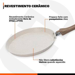 Distribuído por feheros shop Panquequeira 22cm revestimento cerâmico antiaderente indução fundo triplo Atenção Panelas com revestimento cerâmico possuem propriedades antiaderentes, evitando que os alimentos grudem durante o cozimento. Comparadas ao teflon, o cerâmico pode exigir mais cuidado e o uso de uma pequena quantidade de óleo ou para que os alimentos não grudem. É uma escolha saudável e ecológica, pois não libera substâncias tóxicas quando aquecido. - panquequeira premium com certificação inmetro nível a . - não deixem a chama do fogão pegar nas laterais das panelas, isso pode causar danos na sua panela. - leia atentamente a descrição e siga o passo a passo que o fabricante recomenda. Informações do produto: A panquequeira 22cm com revestimento cerâmico antiaderente e fundo triplo é ideal para quem busca qualidade e eficiência na cozinha. Com aquecimento uniforme e design sofisticado, garante preparos mais rápidos e saudáveis, preservando o sabor dos alimentos. Além de funcional, a mesma foi desenvolvida para ser segura e durável. Seu cabo em baquelite com revestimento soft touch proporciona um manuseio confortável e evita o superaquecimento, prevenindo queimaduras. Especificações técnicas: - compatível com fogões a gás, elétricos, vitrocerâmicos e por indução. - revestimento cerâmico antiaderente livre de pfoa e ptfe, garantindo mais saúde e segurança. - design moderno que combina elegância e praticidade. - cabo de baquelite com revestimento soft touch para maior conforto e segurança no manuseio, pois evita queimaduras. - aquece rapidamente e distribui o calor de forma uniforme, reduzindo o tempo de preparo e economizando energia. - possui 2 camadas de revestimento cerâmico e 1 camada resistente a alta temperatura. Ficha técnica do produto: -diâmetro: 22cm - altura: 2cm - capacidade: 400ml - peso: 350g - espessura: 4mm - material: alumínio com revestimento cerâmico Antes do primeiro uso cura do produto : Para começar, vamos aprender como curar a panquequeira de cerâmica. Já adiantamos que o processo é bem simples e rápido, mas faz toda a diferença na preparação e no sabor dos pratos. - lave a panquequeira com uma esponja macia e detergente líquido. - seque bem com um pano seco. - aplique uma fina camada de óleo vegetal na parte interna. - leve ao fogo baixo por 2 minutos. - deixe esfriar, lave novamente e seque antes de usar. Após o uso: Evite choques térmicos. Deixe esfriar completamente antes de lavar. É simples manter seu produto limpo e conservado. Basta lavá-lo à mão, com água morna e uma esponja macia, com sabão neutro ou detergente. Em seguida, enxágue e seque bem com um pano macio para não danificar. Para remover alimentos queimados, deixe o produto imerso em água por alguns minutos. Se for necessário esfregar, use materiais não abrasivos. - não é indicado pelo fabricante o uso de utensílios metálicos, objetos afiados ou produtos abrasivos. Itens inclusos no pacote: - 01 panquequeira 22cm revestimento cerâmico antiaderente indução fundo triplo Todas as fotos são reais do produto, qualquer dúvida estamos à disposição Dúvidas frequentes: 01- a panquequeira pode ir ao forno R: não é adequado para uso no forno nem micro-ondas devido ao cabo em baquelite. 02- o produto é novo Possui R: sim, o produto é novo e possui de 3 meses conforme as normas do fabricante. 03- é compatível com fogão de indução R: sim, ele possui fundo especial que permite o uso em fogões de indução, além de fogões a gás, elétricos e vitrocerâmicos. 05- como faço para acompanhar o envio R: você pode acompanhar o envio do seu pedido por meio do código de rastreamento fornecido na sua conta após a confirmação do envio.