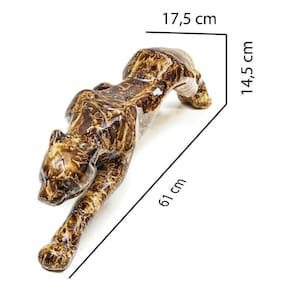 Feita de cerâmica de alta qualidade, a peça apresenta uma cor profunda que evoca a beleza da natureza selvagem. A temática decorativa da escultura a torna perfeita para embelezar salas de estar, escritórios ou espaços de meditação, adicionando um toque de personalidade e arte ao ambiente. O peso de 2 kg garante estabilidade, tornando-a ideal para exibição em prateleiras, mesas ou aparadores.